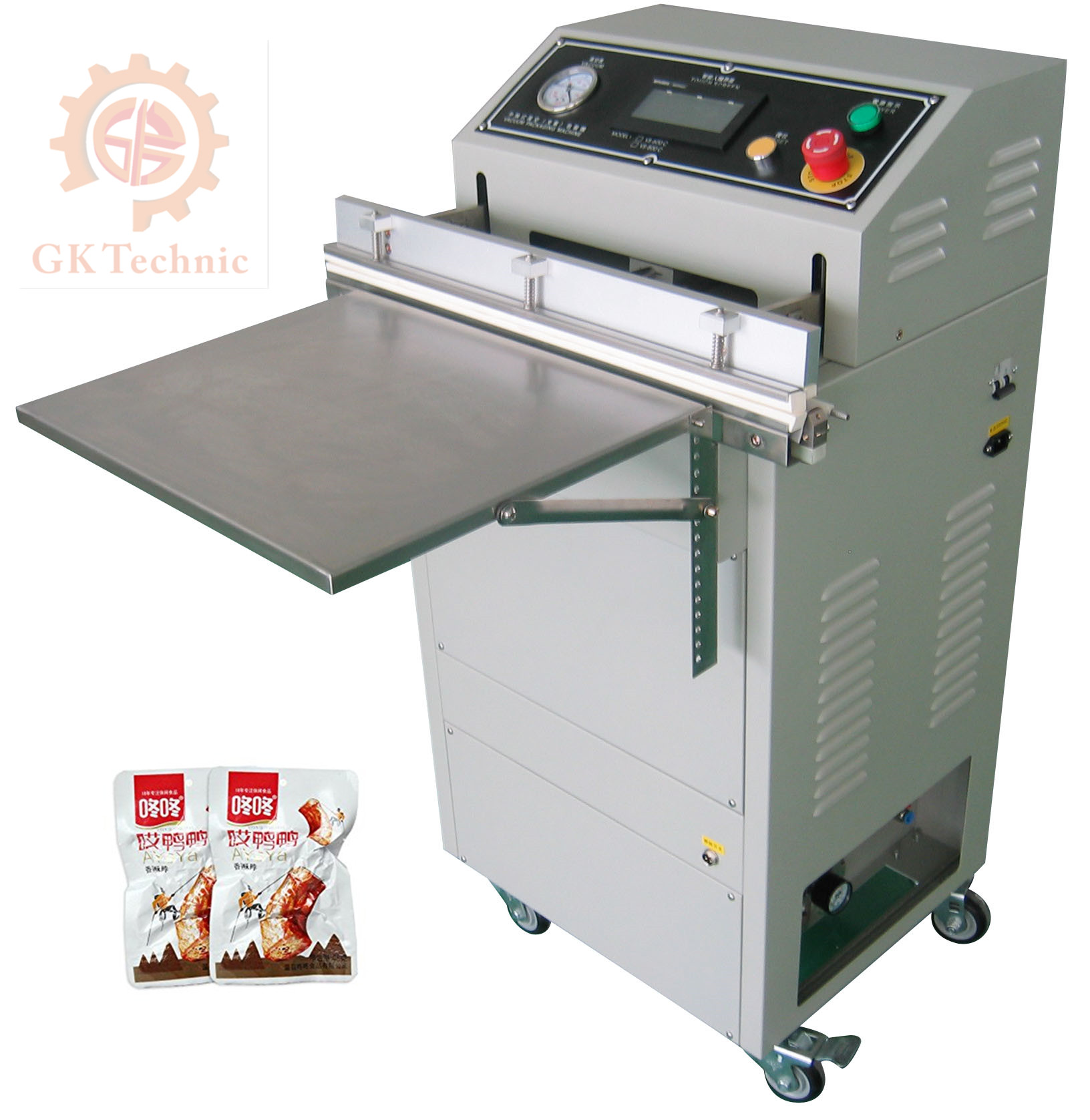 三、按下抽真空包裝機蓋子,面板上的空氣(真空)指示燈亮。當(dāng)真空泵開始泵送時,機蓋將自動吸入,真空旋鈕可根據(jù)包裝要求調(diào)節(jié)真空度。調(diào)整時,根據(jù)抽真空包裝機刻度,從低到高的范圍小幅調(diào)整。