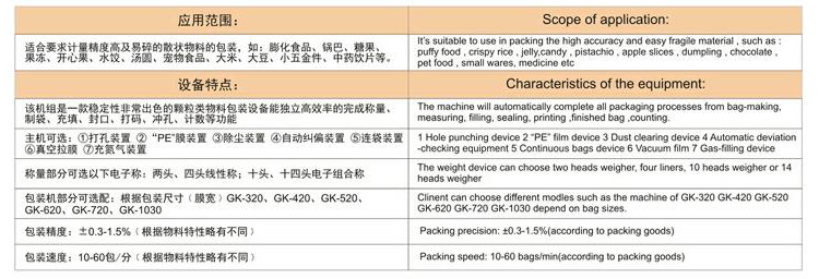 廣泛適用于食品類、五金類、農(nóng)產(chǎn)品類、日化類、醫(yī)藥類等多個行業(yè)領域的顆粒類、不規(guī)則類產(chǎn)品的包裝
